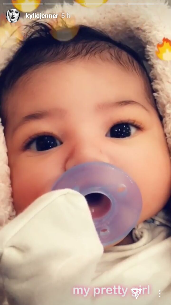 "Mi niña bonita", escribió Kylie junto al tierno video de la bebé con un chupete en la boca y en el destacan sus ojos oscuros.
