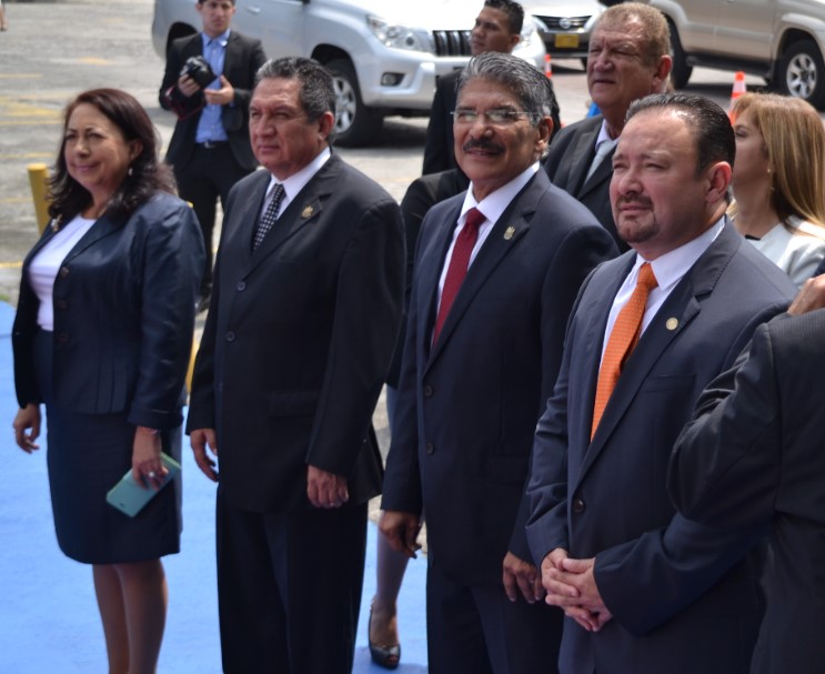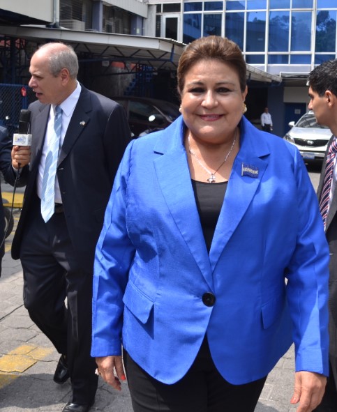 La magistrada del Tribunal Supremo Electoral, Guadalupe Medina, usó un traje negro con algunos detalles en su cuello.
