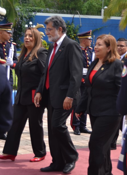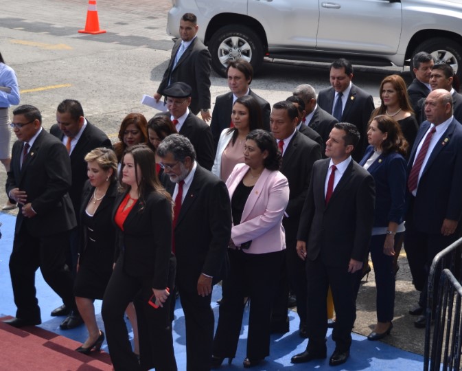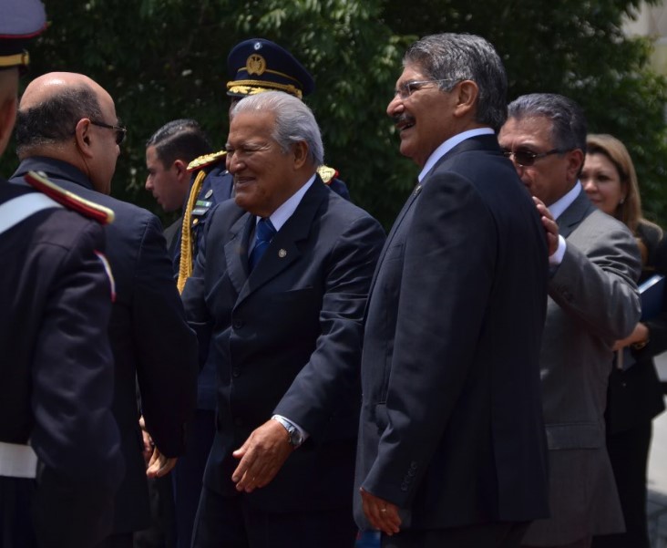 El presidente de la República, Salvador Sánchez Cerén, llegó con su tradicional traje azul-negro con una corbata azul.