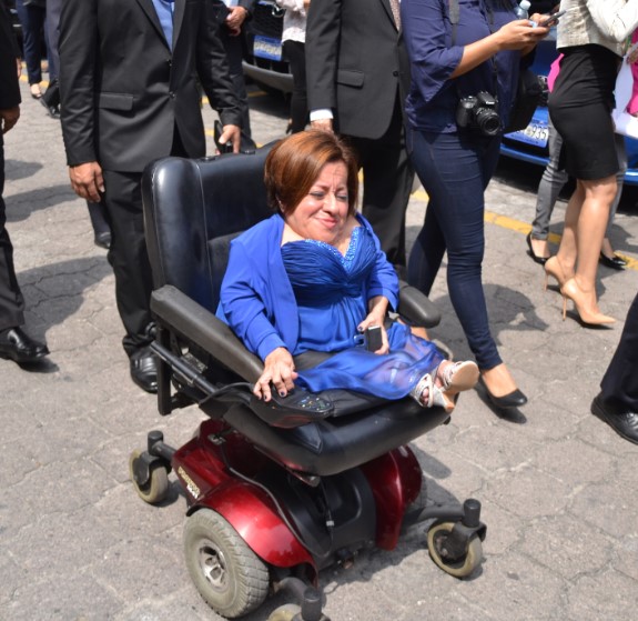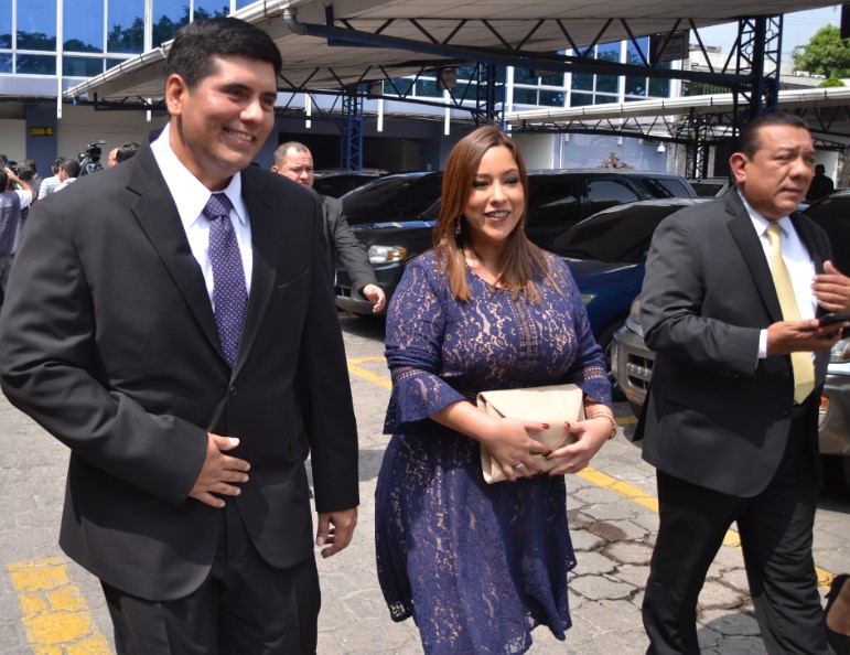 Eileen Romero optó por un vestido azul, como el color de su partido. Ahí no la muestra, pero al entrar también se colocó una boina negra.