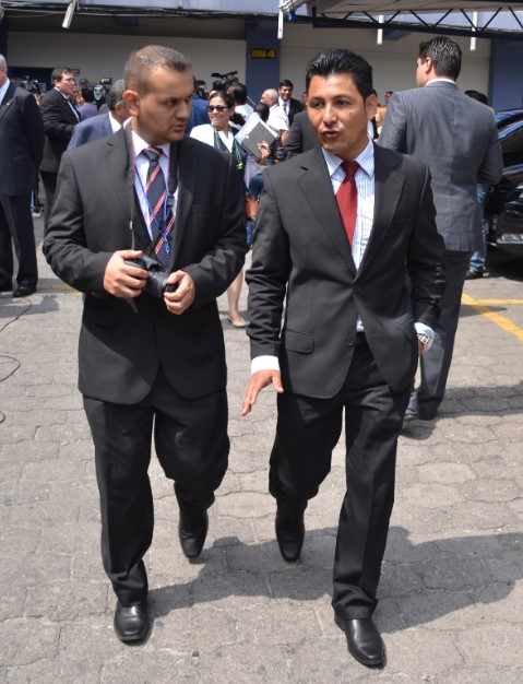 Carlos Ruiz y Damián Villacorta lucieron sus corbatas rojas. Esta vez el diputado de la boina no se dejó en la bicicleta, pero sí llevaba una en miniatura, que parecía trofeo.