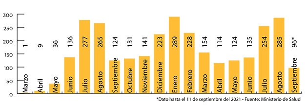 Enero y agosto 2021 han sido los meses con mayor número de decesos desde el inicio de la pandemia, según cifras oficiales.