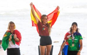 En la rama femenina, la española Janire Etxabarri se impuso con 14.57 puntos (7.50 + 7.07) en una final muy disputada ante Yolanda Sequeira (Portugal), Sally Fitzgibbons (Australia) y Arena Rodríguez (Perú). Su temple en los últimos minutos le permitió asegurar la primera medalla dorada de su carrera en open.