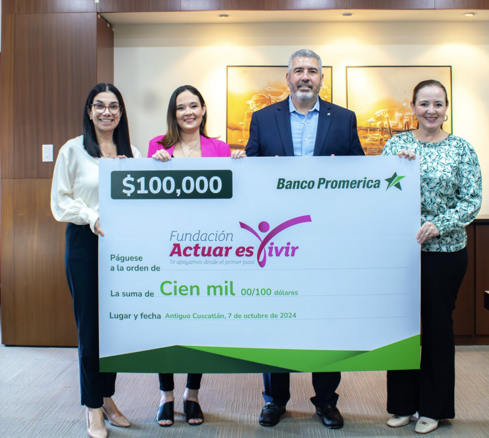"El apoyo constante de Banco Promerica nos ha permitido llegar a más mujeres en situación de vulnerabilidad, ofreciéndoles no solo la oportunidad de realizarse Chequeos Rosa, sino también esperanza y la posibilidad de un diagnóstico temprano. Este donativo es clave para continuar nuestra misión de salvar vidas y crear conciencia sobre la importancia de la detección temprana del cáncer de mama y cérvix" Alejandra Menéndez, Directora Ejecutiva de la Fundación Actuar es Vivir.