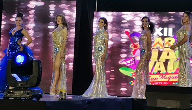 Las candidatas a reina del Carnaval de San Miguel, nominado “En carnaval recordamos con amor los héroes de El Salvador " lucieron sus trajes de fantasía, los que esta vez fueron inspirados en reconocer la contribución de los héroes y heroínas que han fallecido debido al covid-19 en El Salvador.