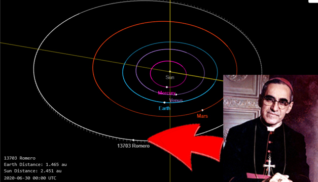 Según el sitio http://ssd.jpl.nasa.gov/ el 13703 Romero fue nombrado así en memoria del arzobispo asesinado y canonizado por el Papa Francisco.