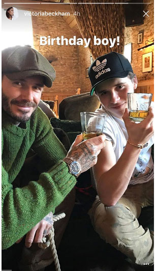 Brooklyn cumplió el deseo de su padre tal como puede verse en una historia en Instagram de Victoria Beckham en la que se aparecen ambos tomando una cerveza.