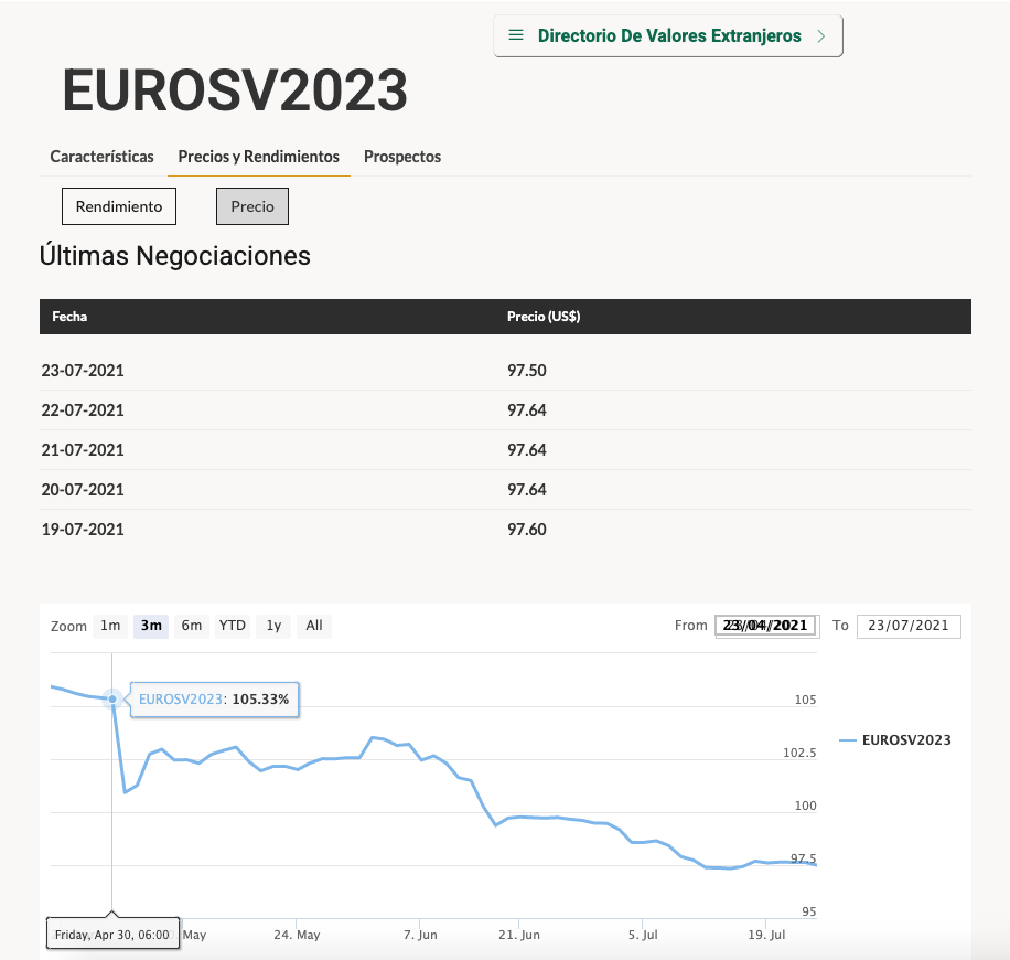 Comportamiento de los bonos con vencimiento para 2023. Para pagar este compromiso, el Ministerio de Hacienda debe solicitar financiamiento para el presupuesto de 2022.