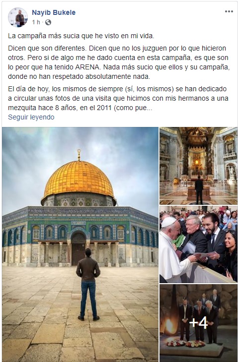 En su misma publicación, Bukele comparte imágenes en las que se le ve visitando otras mezquitas y también otros templos religiosos, así como un encuentro que tuvo con el papa Francisco.