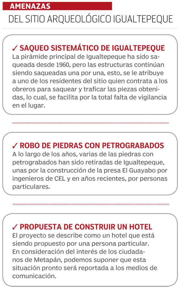 Asimismo, detalló que en este caso el ministerio solamente puede determinar las medidas de protección, porque “la Ley Especial de Protección al Patrimonio Cultural de El Salvador, lastimosamente permite la compra y venta de objetos o bienes culturales, entonces una persona que tenga un sitio arqueológico en ningún momento tiene prohibido vender ese sitio arqueológico, lo que sí se prohíbe, son las actividades que se van a realizar dentro del sitio, es decir, dentro del suelo, es lo que está restringido en este caso”, acotó Díaz.