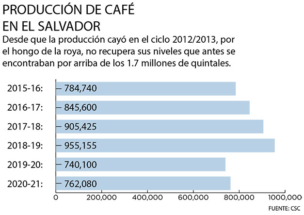 Omar Flores, presidente de la Acafesal, señaló que los productores “estamos esperanzados” de superar los 800,000 quintales, una proyección que plantea un crecimiento del 5 % contra los 762,080 quintales producidos en el ciclo 2020/2021.