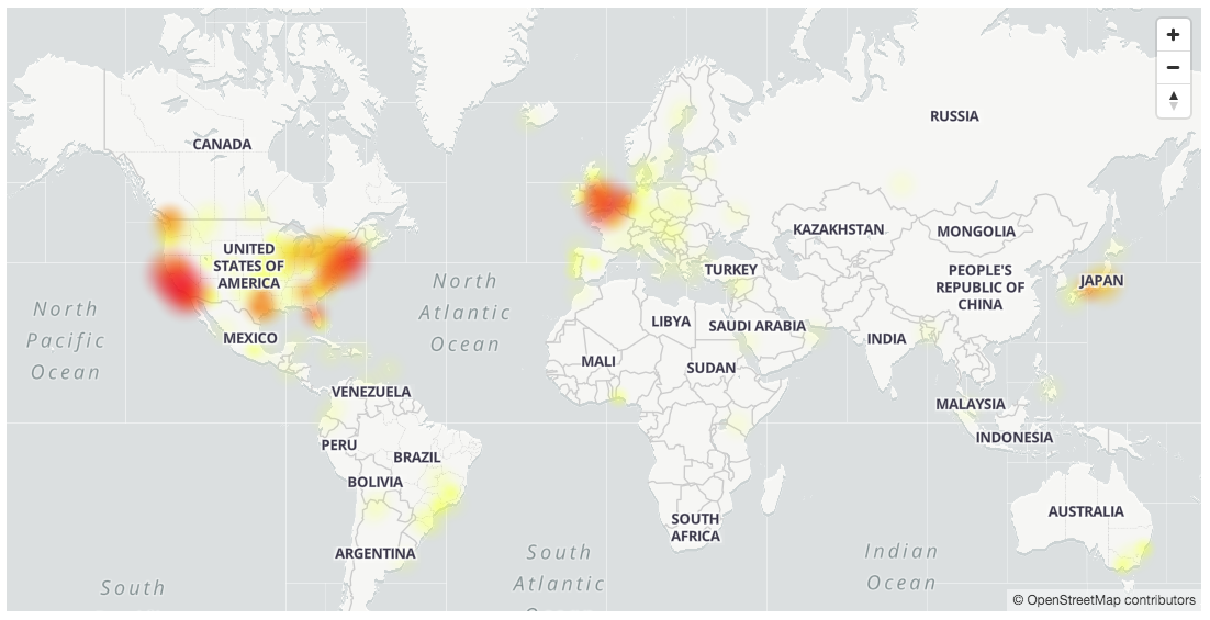 El portal de monitoreo downdetector.com indica que la región más afectada en usuarios es el este de Estados Unidos y Europa.
