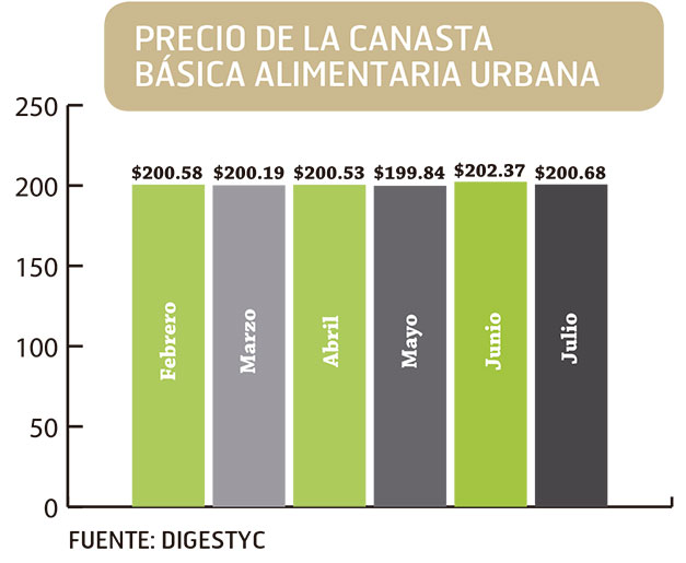 En tanto, el precio de la canasta alimenticia en la zona rural experimentó una leve baja de $0.29 al pasar de $144.43 en junio pasado a $1144.14 en julio.
