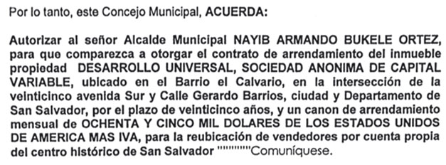 Rivera aseguró que escuchará a los vecinos del mercado Cuscatlán, así como a los negocios y los capitalinos en general. El mercado fue inaugurado en diciembre de 2016. De acuerdo con el alcalde Nayib Bukele, quien perteneció al FMLN hasta el 10 de octubre pasado, el Mercado Cuscatlán es el primer mercado que se construye en la capital durante los últimos 35 años.