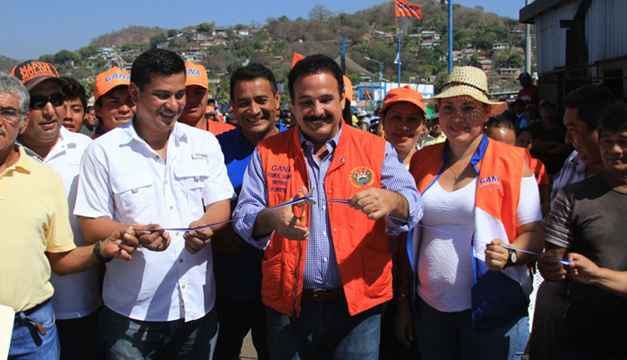 “En la ceremonia de inauguración del nuevo dispositivo, conocido como winche, también participaron el futuro alcalde de la ciudad, Rafael Avalos, y comerciantes de mariscos del muelle del Puerto de La Libertad”, informó el partido naranja. Aseguran que el motor fue adquirido con fondos propios del diputado y candidato a la reelección.