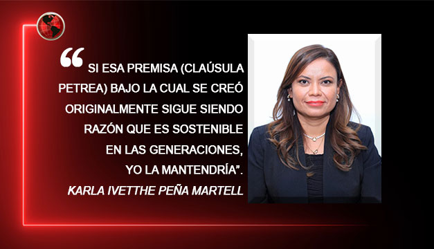 La candidata a magistrada Karla Ivette Peña Martell, jefa del Departamento de Ciencias Jurídicas de la Universidad Centroamericana, respondió que sí encontró que las cláusulas pétreas fueron reformas en golpes de Estado.