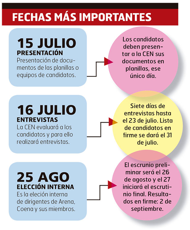 “Declaro bajo juramento que participaré en las elecciones para el Consejo Ejecutivo Nacional de Arena que se celebrarán el día 25 de agosto de 2019, que cumplo con los requisitos establecidos en el artículo 20 de los estatutos”, reza la declaración jurada.