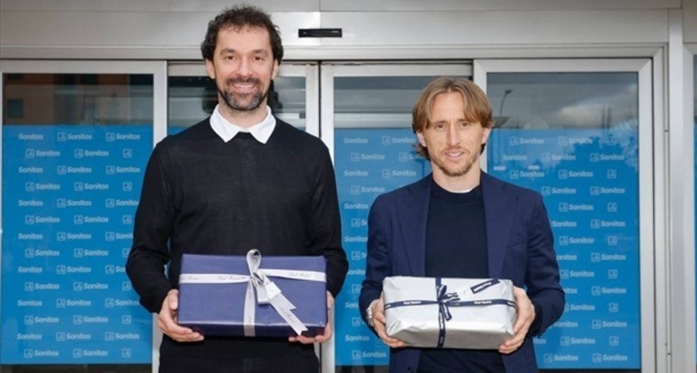 El capitán del equipo de fútbol, Luka Modric, y el capitán del de baloncesto, Sergio Llull, han visitado el Hospital Universitario Sanitas La Moraleja para entregar juguetes a los más pequeños en colaboración con la Fundación Real Madrid, según un comunicado de Sanitas.