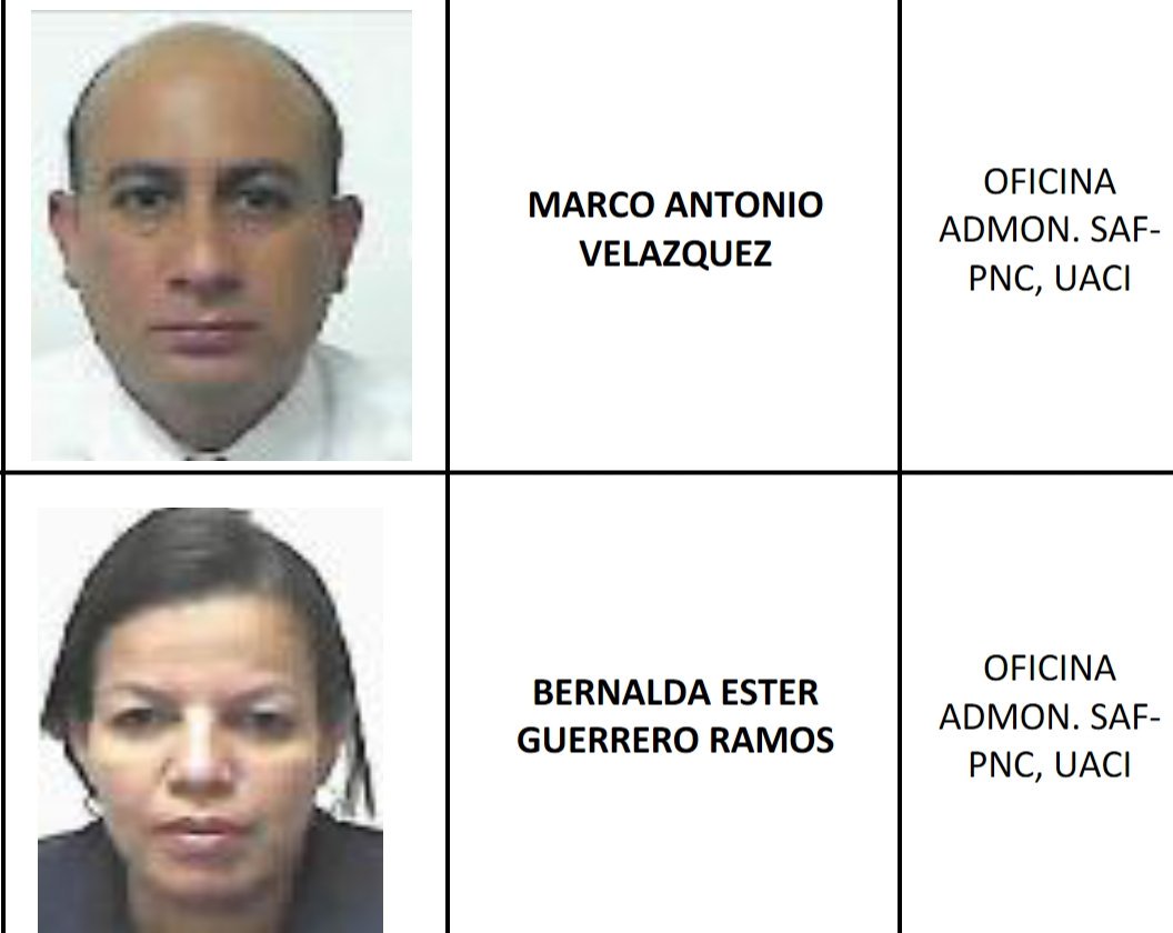El Ministerio Público detalló que los detenidos pertenecen a la subdirección de administración de la corporación policial, y que dentro de estos está el jefe de la Unidad de adquisiciones y contrataciones institucionales (UACI). También se encuentran vinculados jefes de los departamentos de suministros y almacenes.