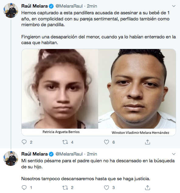 Fingieron una desaparición del menor, cuando ya lo habían enterrado en la casa que habitan”. Raúl Melara, Fiscal GeneralEl fiscal general, Raúl Melara, indicó en su cuenta de Twitter que la pareja había enterrado el cuerpo del niño en el patio de la casa que habitan en la colonia Vista al Lago, municipio de Ilopango.