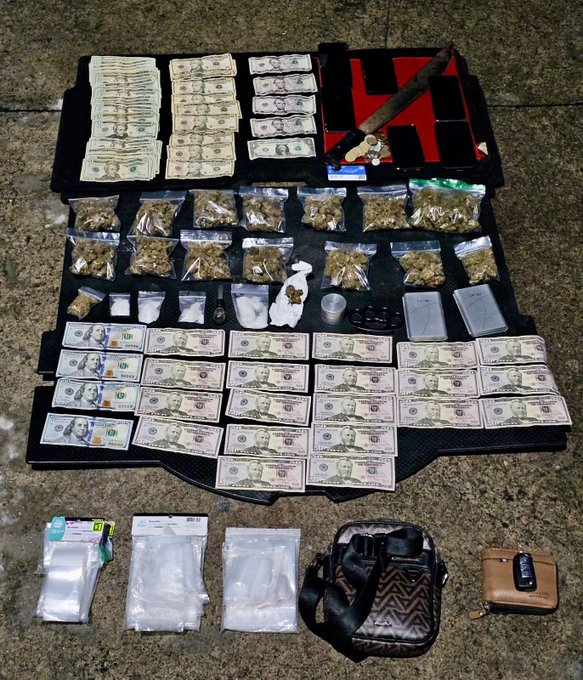Entre los artículos en decomiso figura bolsas de droga, dinero en efectivo, y un machete.