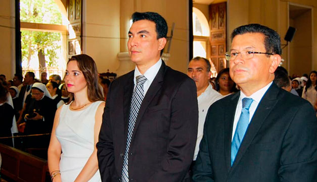 Sin embargo, a la ceremonia que duró más de dos horas, asistieron dos candidatos presidenciales: Carlos Calleja, de ARENA, quien llegó acompañado por su esposa Andrea y su compañera de fórmula, Carmen Aída Lazo. También asistió el aspirante presidencial del FMLN, Hugo Martínez.