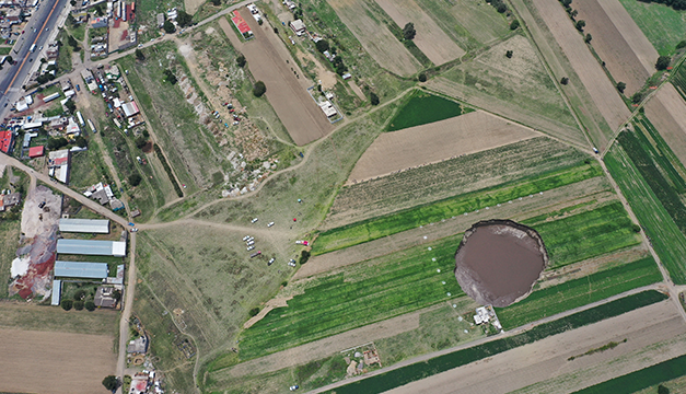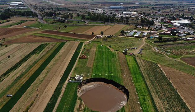 El socavón que desde la semana pasada crece decenas de metros diariamente tiene preocupados a los habitantes de una zona rural del estado mexicano de Puebla (centro).