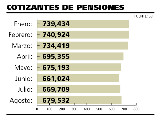 EN CONTEXTO: OIT: Covid-19 tuvo un impacto catastrófico en el empleo en el mundoSin embargo, el reporte de cotizantes al Sistema de Ahorro de Pensiones, elaborado por la Superintendencia del Sistema Financiero (SSF)y con datos hasta el 31 agosto (un mes más que el del ISSS), reporta un incremento de 18,000 desde junio cuando el indicador cayó hasta los 661,024, cifras que comienzan a dibujar una línea de recuperación, ya que es el segundo mes de crecimientos.