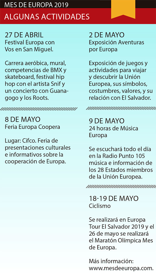 Las embajadas de la Unión Europea (UE), Alemania, Francia, Italia, España y Reino Unido realizarán a partir del 27 de abril una agenda de actividades para conmemorar el Día de Europa bajo el lema “Unidos en la diversidad”.