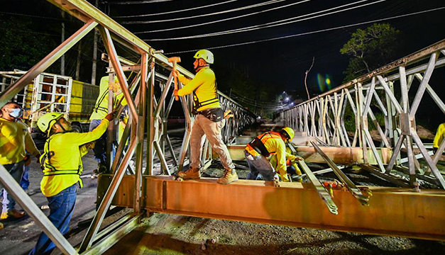 El jefe de Obras Públicas, Romeo Rodríguez dijo anoche a medios estatales, que el puente será instalado para continuar la construcción de un puente de concreto a tres carriles “que mejore la conectividad” en esta transitada vía al oriente de San Salvador.
