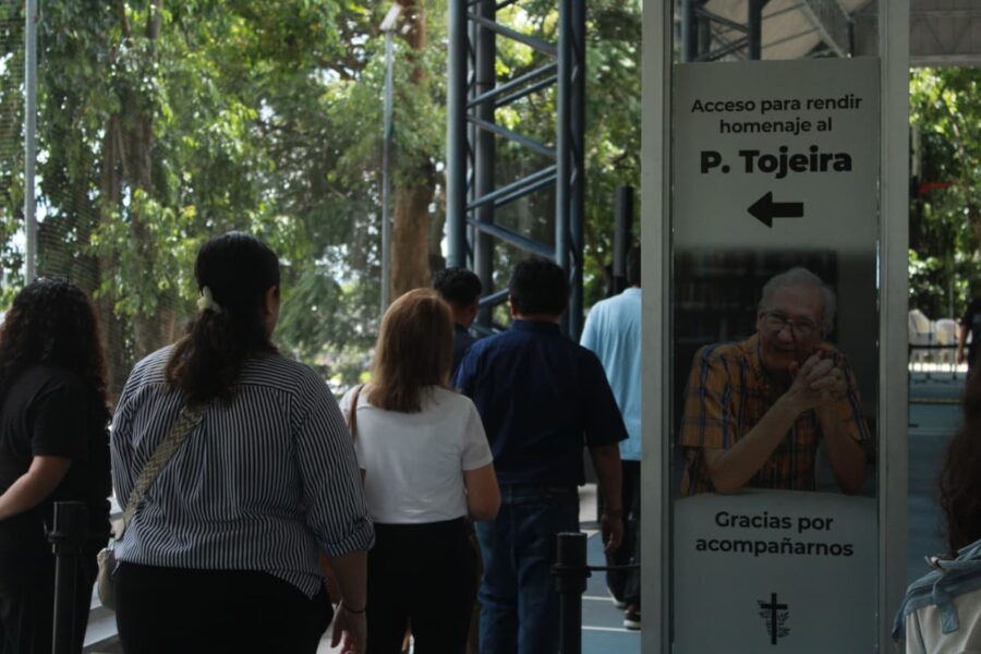 El velorio inició en la mañana de este miércoles en el centro deportivo de la institución, donde personas se acercaron al féretro y brindaron agradecimientos, palabras y llevaron ofrendas florales donde descansan los restos del padre Tojeira. Previamente, la parroquia de El Carmen en Santa Tecla le había rendido honras fúnebres.