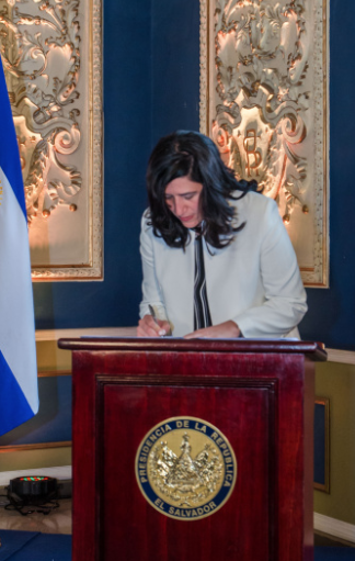 Nombrada el pasado 2 de mayo, a través de la red social Twitter, completó sus estudios de posgrado en la Escuela de Salud Pública de la Universidad Johns Hopkins, especializándose en manejo y desarrollo de políticas de salud pública en el área de violencia y tratamiento y prevención del abuso de las drogas; y también completó sus estudios de licenciatura o pregrado en la Universidad de Boston. Ha sido jefa de Reducción de la Demanda en la Comisión Interamericana para el Control del Abuso de Drogas (Cicad) de la Organización de Estados Americanos (OEA). Trabajó como directora ejecutiva de la Fundación Antidrogas de El Salvador (Fundasalva), una organización no gubernamental reconocida a nivel internacional dedicada a la prevención y el tratamiento antidrogas desde 1989. Fue parte de la Comisión Nacional de Seguridad Pública (CNSP), de la Comisión Nacional contra las Drogas y la Junta Nacional de la Salud Mental.