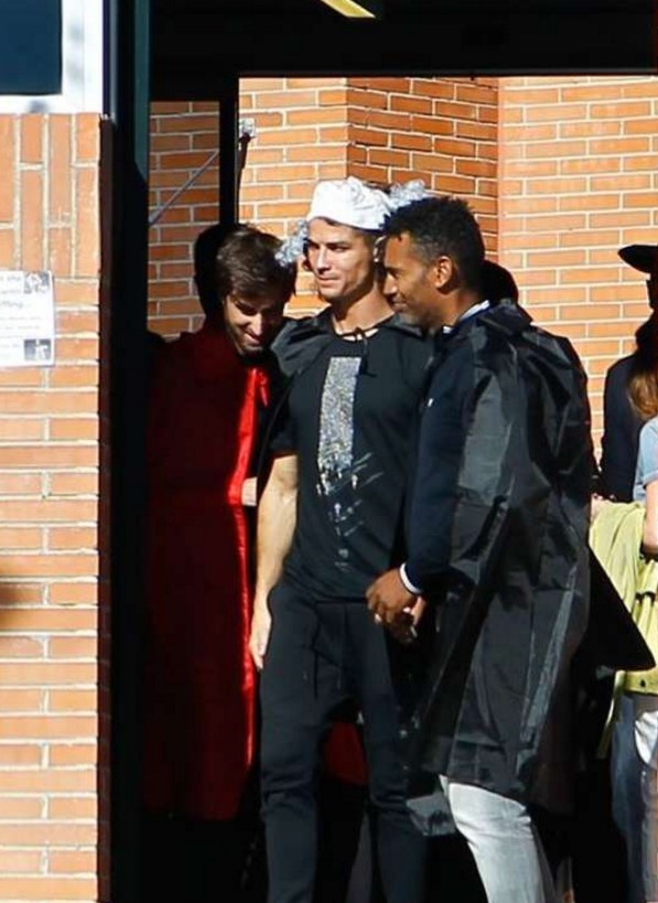 Pero, no era locura del jugador, sino que el colegio celebraba una fiesta de disfraces y como padre responsable buscó participar. Cristiano Jr. vestía de espantapájaros.