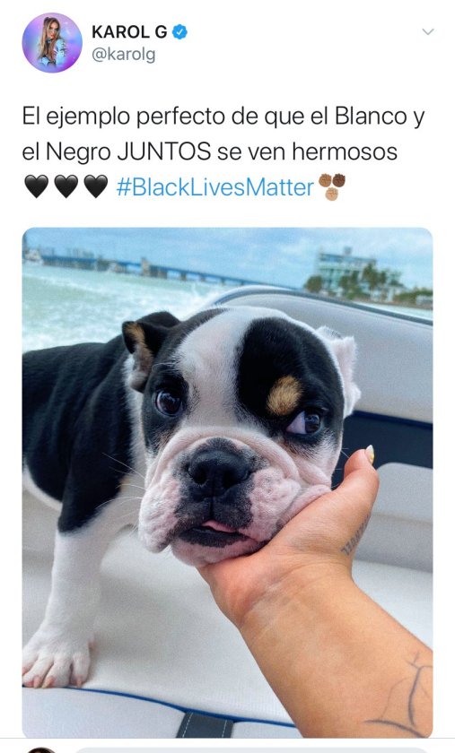 “Entonces Karol G ha hecho carrera cantando una música que viene de ritmos negros, pero para ella el racismo es como un perrito con manchas”, escribió una usuaria en Twitter.