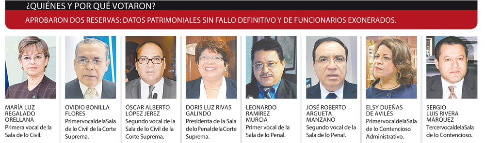 La decisión fue votada por los magistrados Doris Luz Rivas Galindo, Ovidio Bonilla, Leonardo Ramírez Murcia, Óscar López Jerez, Sergio Luis Rivera, Elsy Dueñas, Roberto Argueta Manzano y María Luz Regalado, ayer en Corte Plena.