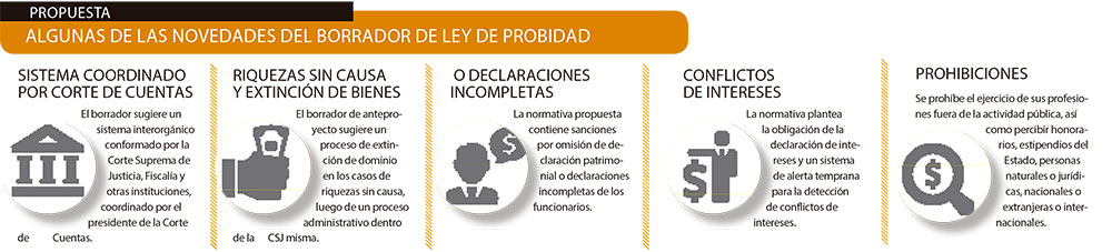 El borrador propone la creación de un “sistema interorgánico de probidad” conformado por la Corte de Cuentas, CSJ, Fiscalía General de la República, Dirección de Probidad, Tribunal de Ética Gubernamental, Instituto de Acceso a la Información Pública, tribunales de extinción de dominio y penales, y titulares de instituciones públicas, y coordinado por el presidente de la Corte de Cuentas.