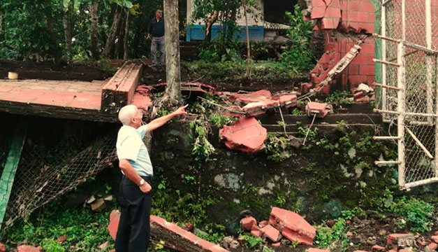 También, las autoridades reportaron que en el cantón El Conacastal, Chinameca, la fuerza de la corriente de agua que baja del volcán Chaparrastique provocó que un muro de 14 metros de longitud, colapsara en el centro escolar, Rosa Hirleman.