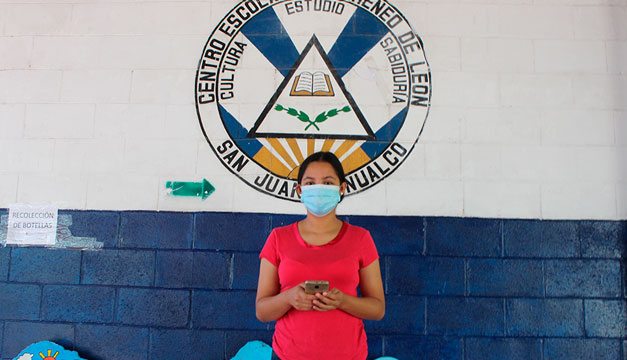 “Incluso ahí donde yo voy a distancia, hay mucha más personas que no tienen teléfono para poder enviar las tareas, sino que a donde un vecino a que se los preste para poderlo mandar”. Daniela Alvarado, estudiante de bachillerato semipresencial en el Centro Escolar Profesor Irineo de Leon, San Juan NonualcoUna solución.