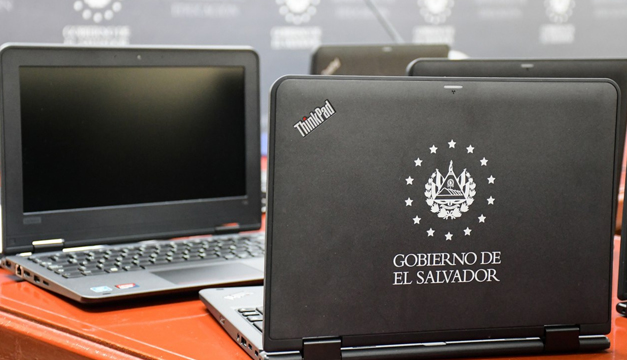 Los ministros de Gobernación y Educación, Mario Durán junto a Carla Hananía de Varela firmaron un convenio para distribuir los ordenadores a los docentes del sector público, por medio del sistema de Correos de El Salvador.