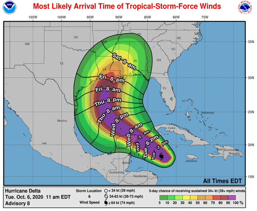 Delta es la vigesimosexta tormenta con nombre de una temporada de huracanes en el Atlántico inusualmente activa en la que se han batido varios récords, entre ellos que se agotó la lista de nombres previstos para los ciclones y los meteorólogos comenzaron a identificarlos con el alfabeto griego.