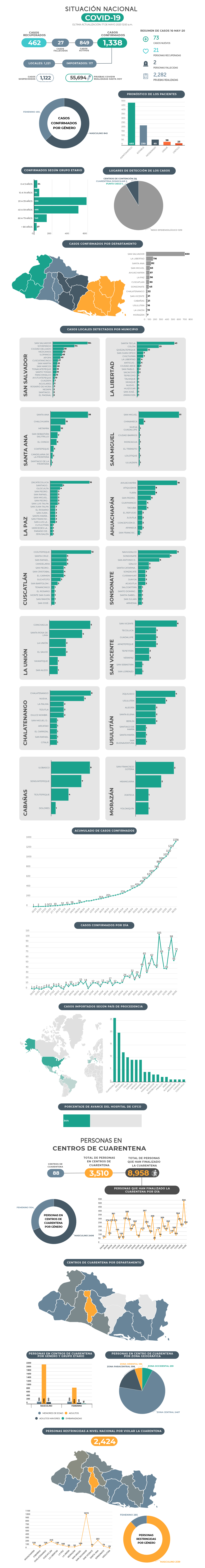 Los casos en el departamento siguen siendo localizados en poblaciones populosas en 12 municipios del departamento; mientras que el resto de casos fueron encontrados en La Libertad (8), Santa Ana (3), Chalatenango (3), Cuscatlán (3), Cabañas (2), San Miguel (2), Ahuchapán (1), La Paz (1) y Sonsonate (1).
