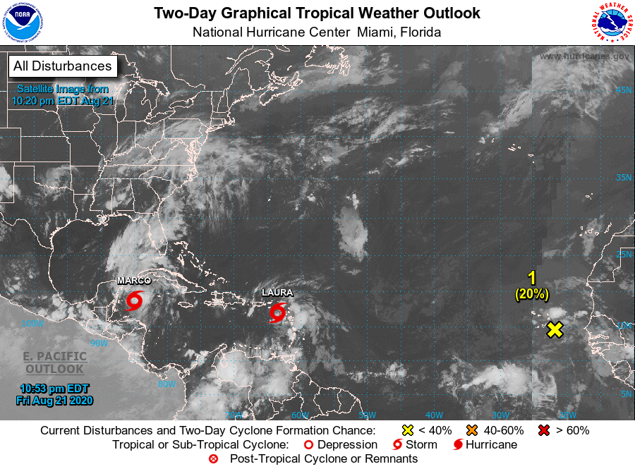 El NHC también emitió alerta para la Florida y vigilancia en el Caribe debido al avance de la tromenta tropical Laura.