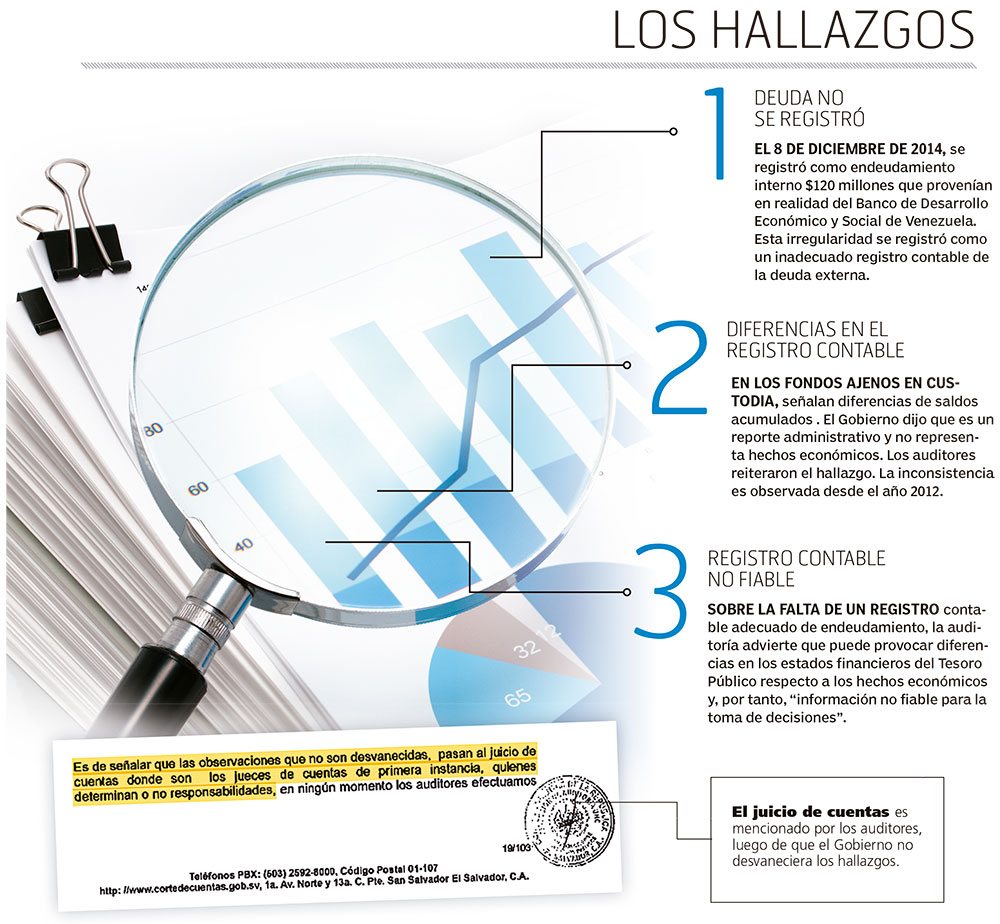 Los auditores señalaron que la cuenta de Fondos Ajenos en Custodia no posee un control de financiamientos y reintegros, pese a que cubre deficiencias temporales de la cuenta corriente única del tesoro público. Los montos que maneja esta cuenta no son pequeños. En 2014, el saldo era $649 millones.