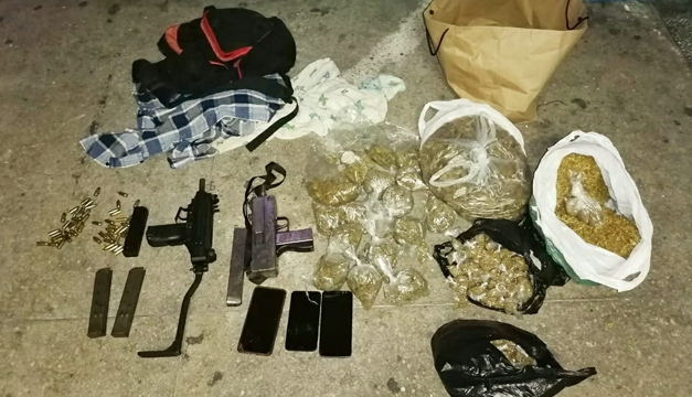 Las autoridades indicaron que a los sujetos, que se conducían en un vehículo en la zona, les decomisaron una subametralladora UZI, munición para la misma, tres celulares y cinco libras de marihuana, además del automóvil.