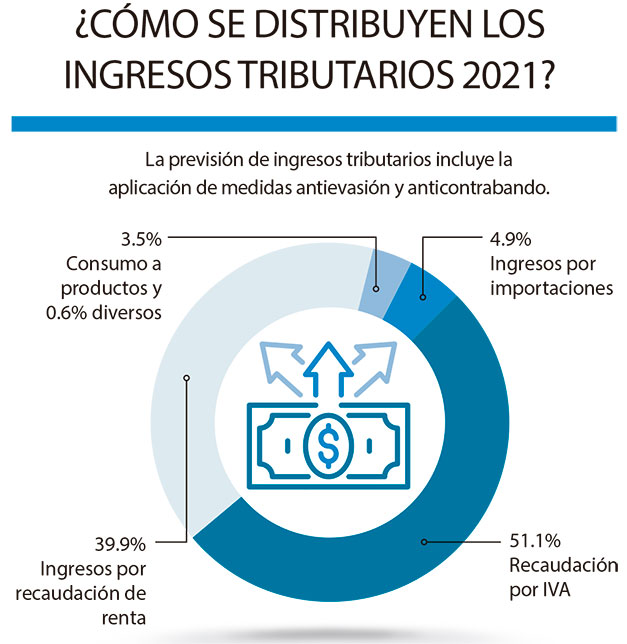 También señaló que se proyecta una recaudación del Impuesto al Valor Agregado (IVA) del 14.1 % comparado al presupuesto de 2020.