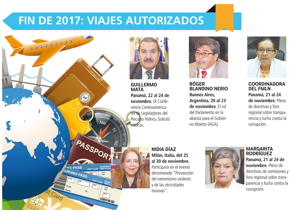 También, la diputada Margarita Rodríguez, del FMLN, solicitó boleto y viáticos para viajar a Panamá, 21 al 24 de noviembre, para asistir a un evento denominado “Pleno de directivas de comisiones y foro regional sobre transparencia y lucha contra la corrupción”.