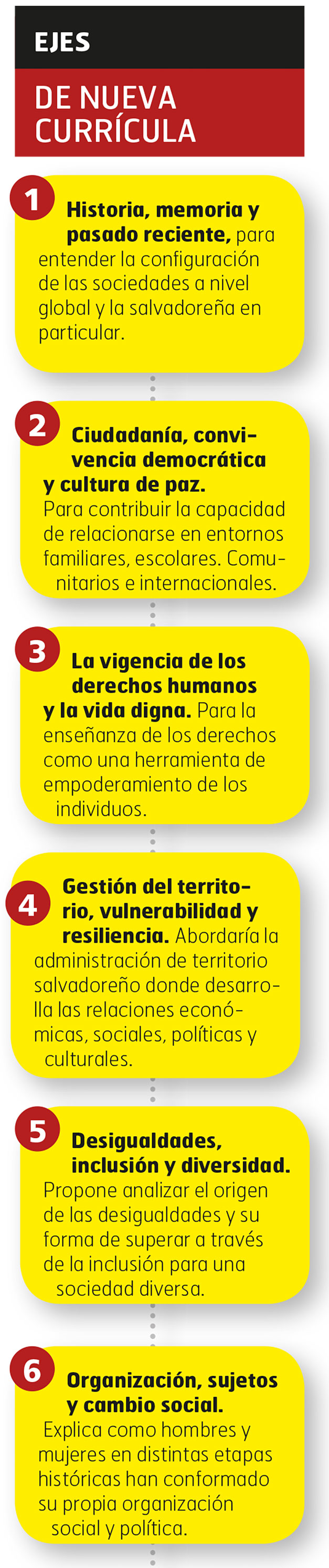 Actualmente, tanto tercer ciclo como bachillerato, cuenta con una currícula de Estudios Sociales vigente desde el 2008, al contrario de la nueva propuesta que presentará el Mineducyt que será una sola, para ambos niveles.