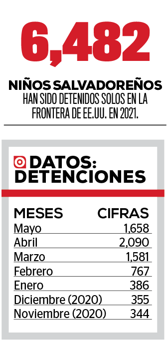 Según cifras de la Patrulla Fronteriza se han quintuplicado las llegadas de los infantes salvadoreños y han sido los meses de marzo, abril y mayo, en los que las cifras se han visto incrementadas en comparación a las más bajas reportadas durante el inicio del años fiscal que comenzó en octubre de 2020.