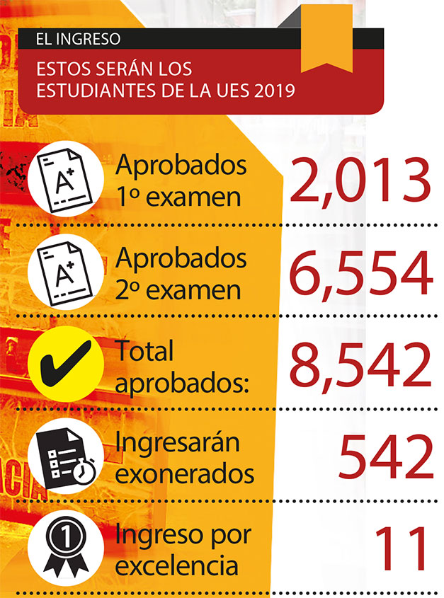 El 60% de estudiantes de bachillerato que se sometieron a la primera y segunda evaluación de nuevo ingreso 2019  para estudiar en la Universidad de El Salvador (UES) reprobó el examen de admisión, es decir que solo 8,567 jóvenes fueron seleccionados.