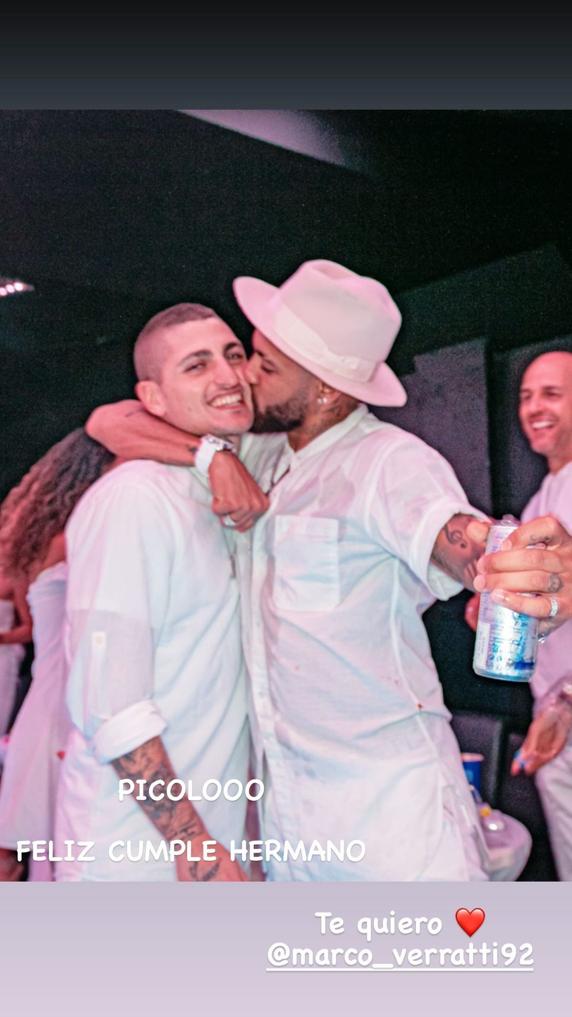 “Picolooo. Feliz cumple hermano. Te quiero”, escribió el crack brasileño junto a una captura en la que aparece dándole al italiano un apasionado beso en la mejilla mientras con la mano izquierda sostiene una lata.